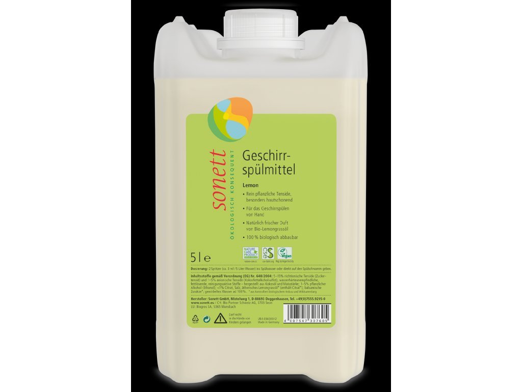 - 5-15% neiónové tenzidy (cukrové tenzidy) a 1-5% aniónové tenzidy (alkoholové sulfáty kokosového oleje) sú účinné proti špine a mastnote aj v tvrdej vode - vyrobené z kokosového oleje a kukuričného škrobu, 1-5% rostlinný alkohol (etanol), <1% citrát, soľ, esenciálny olej z citrónovej trávy* (obsahuje citral*), vonné prísady*, vírená voda;
