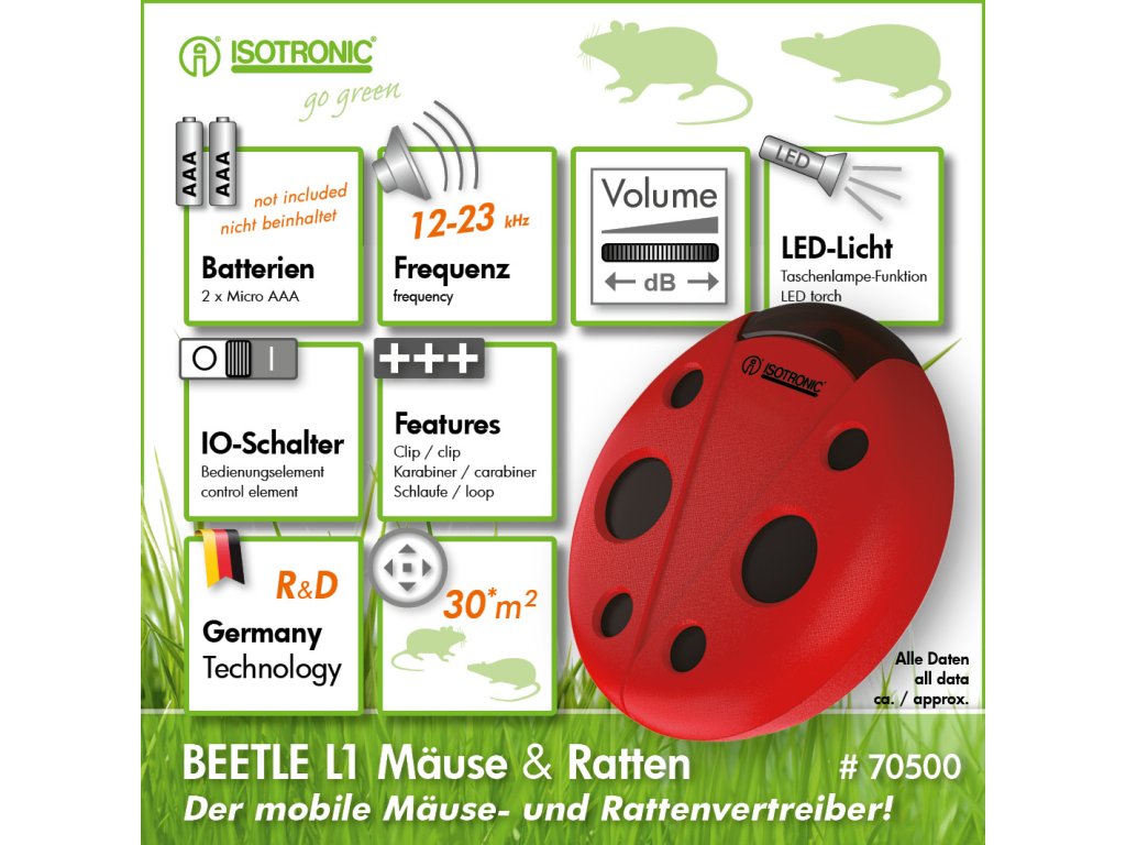 ISOTRONIC mobilní ultrazvukový plašič myší a potkanů je praktické zařízení, které chrání váš domov a majetek bez použití chemie. Díky kompaktnímu provedení a napájení na 2× AAA baterie (nejsou součástí balení) jej můžete snadno umístit kamkoliv – do domu, auta, kempovacího stanu, na zahradu nebo k lodi.