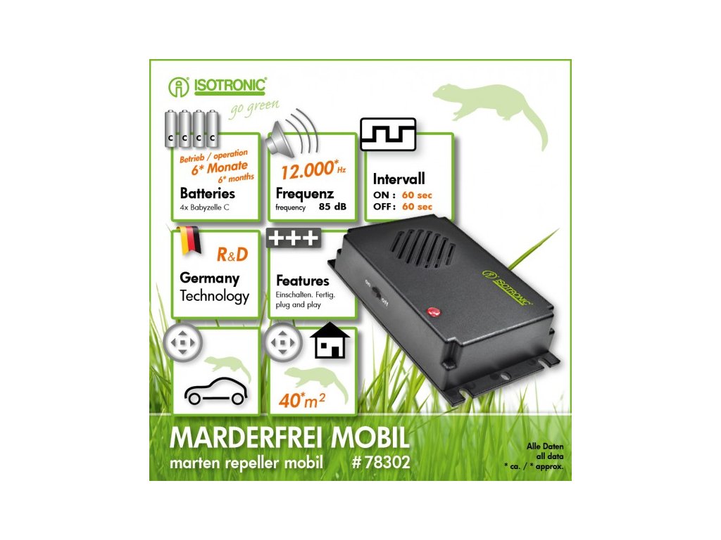 ISOTRONIC Plašič kun a hlodavců UNI je praktické zařízení určené k ochraně vozidel, domů a skladových prostor před škůdci. Využívá vysokofrekvenční ultrazvukové signály (12 kHz), které jsou pro škůdce nepříjemné a narušují jejich orientaci v prostoru.