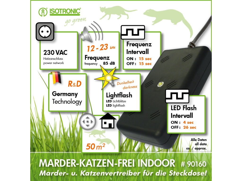 Plašič kun a hlodavců generuje agresivní ultrazvukové signály ve frekvencích 12 - 23 kHz v 15-ti sekundových intervalech. Přibližně každých 26 sekund se aktivuje 4sekundový LED blesk. Tyto signály působí na kuny, hlodavce a kočky rušivě, což je donutí opustit chráněnou oblast. Pro lidi zůstávají tyto zvuky neslyšitelné.